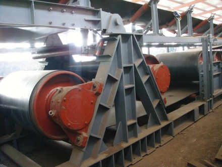 矿用固定式带式输送机适用于煤矿井下暗斜井或主斜井水平和倾角≤29°的连续式输送。其结构特点是机身中间架采用加强型结构,根据坡度大小增加有挡煤防滑装置,制动装置。上槽托辊采用四辊制,分前后两排,形成60°深槽角,**原煤下滑,是煤矿运输提升的重要设备。